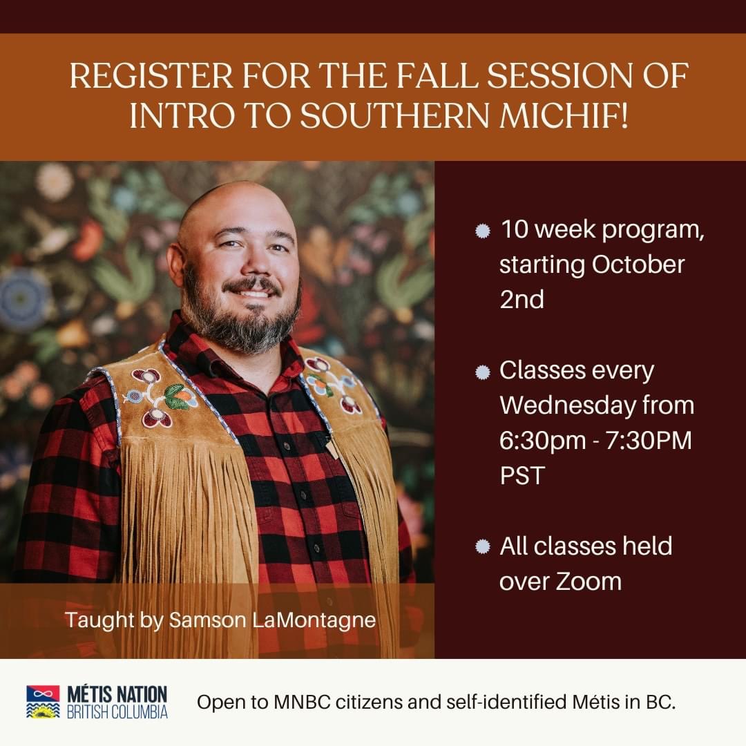 Exciting news! The Ministry of Culture, Heritage and Language is pleased to announce that we are bringing back Samson LaMontagne's Introduction to Southern Michif workshop series this Fall!