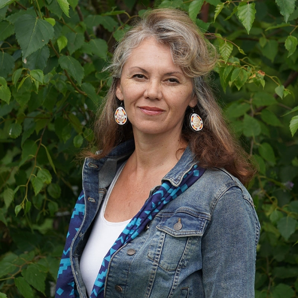 Kim Hodgson is a proud Métis Nation BC Citizen and a descendant of the Red River Settlement and Hodgson, Manitoba. Kim has extensive experience as an educator and a community leader, and she is currently an Early Years - Métis Family Connections Navigator. She is passionate about Métis culture, connecting to the land and sharing Métis traditional knowledge. Métis beadwork has been passed down through generations and is an artistic and cultural expression of Métis people. Kim is a contemporary Métis artist creating beadwork using traditional concepts and techniques.